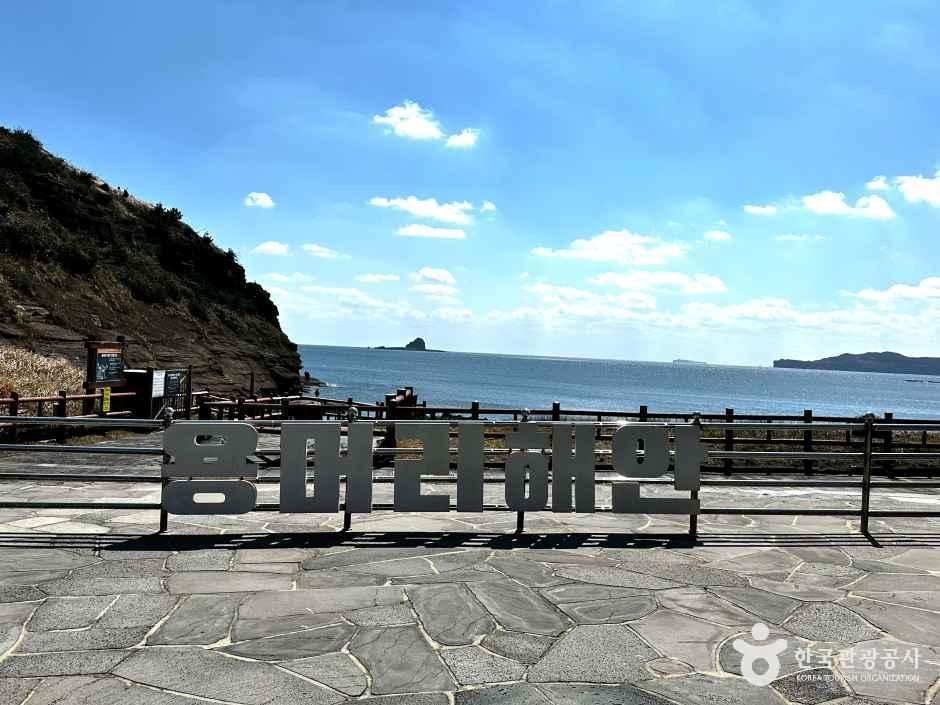용머리 해변은 산방산 앞자락에 있는 바닷가로 산방산 휴게소에서 걸어내려가면 수려한 해안절경의 용머리 해안과 마주치게 된다. 수천만 년 동안 쌓이고 쌓여 이루어진 사암층과 파도가 만들어낸 해안 절벽을 감상할 수 있다. 작은 방처럼 움푹 들어간 굴방이나 드넓은 암벽의 침식 지대가 펼쳐져 장관을 연출하고 있으며, 용머리라는 이름은 언덕의 모양이 용이 머리를 들고 바다로 들어가는 모습을 닮았다 하여 붙여졌다. 전설에 의하면 용머리가 왕이 날 훌륭한 형세임을 안 진시황이 호종단을 보내어 용의 꼬리 부분과 잔등 부분을 칼로 끊어 버렸는데 이때 피가 흘러내리고 산방산은 괴로운 울음을 며칠째 계속했다고 한다. 파도가 하얗게 부서지는 바닷가 바로 옆으로 길이 나있으며, 절벽이 마치 물결치듯 굽어져 있다. 해식애 앞쪽으로 좁지만 평탄한 파식대가 발달되어 용머리해안을 일주할 수 있는 탐방로 역할을 하고 있다. 기상악화나 만조 때에는 위험성이 높아 출입을 금하니 방문 전 미리 관람 가능 시간을 확인하고 가는 것이 좋다. 사암층을 따라 걷다 보면 나오는 해안가 일대에서는 해녀들이 좌판을 깔아 놓고 해산물을 판매하고 있으며 용머리로 들어가는 입구에는 하멜기념비가 서 있다.◎ 한류의 매력을 만나는 여행 정보 - 드라마 드라마 '환혼' 2화에서 장욱(이재욱)이 경천대호에 빠진 무덕이(정소민)를 찾아 도달한 장소가 바로 이곳, 제주 용머리해안이다. 파도에 깎여 형성된 암벽층이 만들어내는 독특하고 아름다운 풍경은 보는 이로 하여금 감탄을 자아낸다.