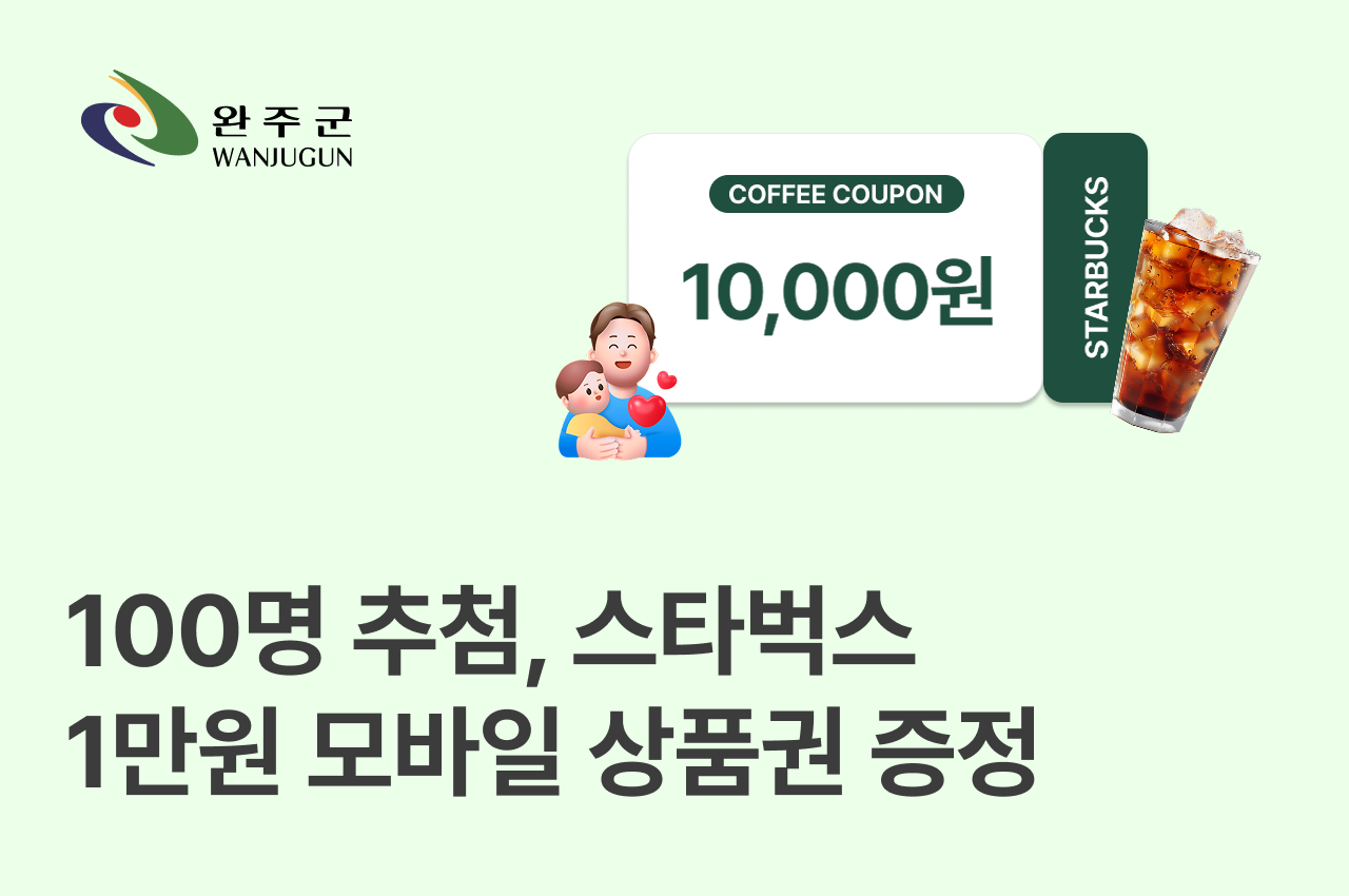 - [전북 완주군] 고향사랑기부 100명 추첨, 스타벅스 1만원 상품권 증정
