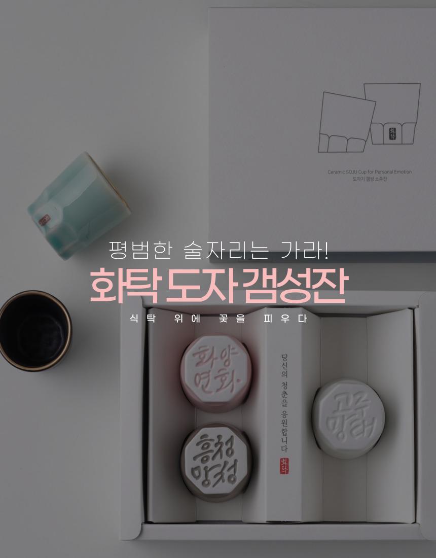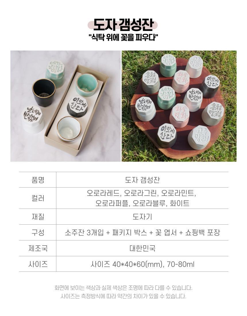광주 우수공예문화상품 지정 도자 잔 세트(소주잔 3개+엽서+쇼핑백포장)
