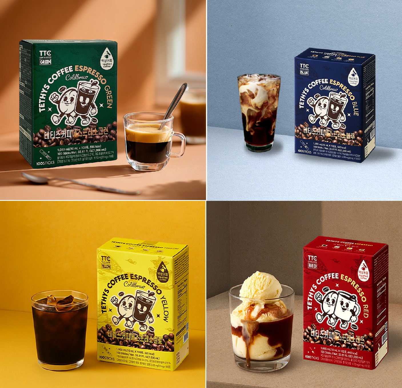 테티스커피 액상형 스틱커피 에스프레소 그린 100포