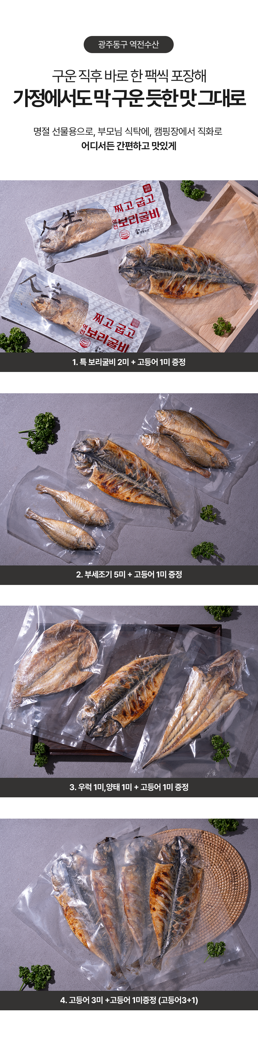 | 품목 또는 명칭 | 구운 보리굴비 3미 세트(+고등어 1미) |