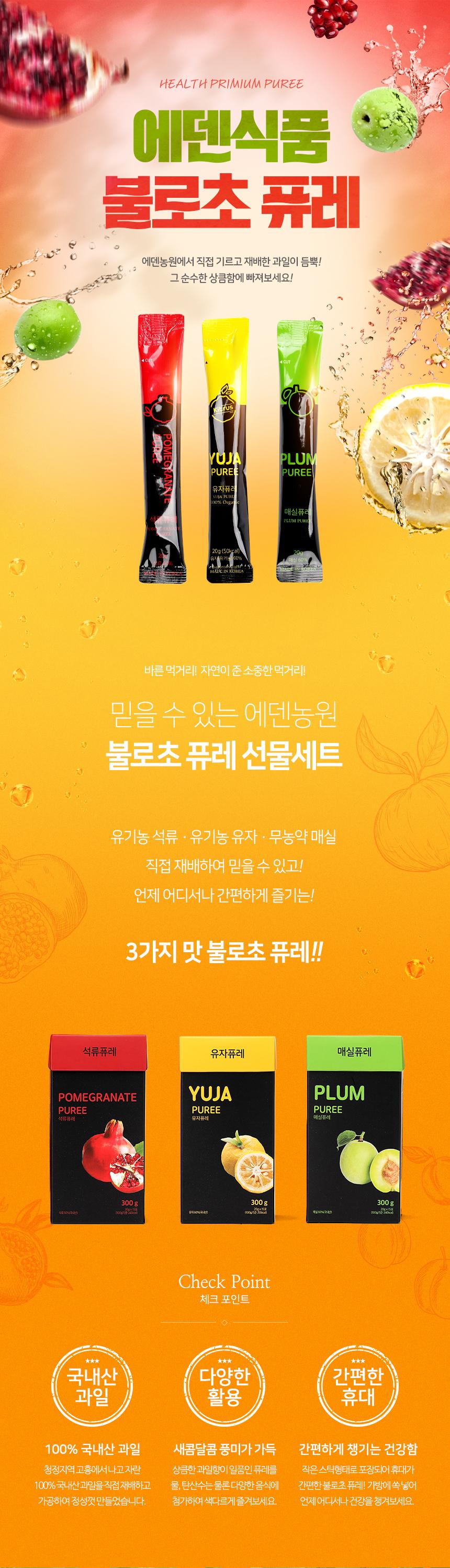 불로초 퓨레 세트 900g(석류 300g+유자 300g+매실 300g)