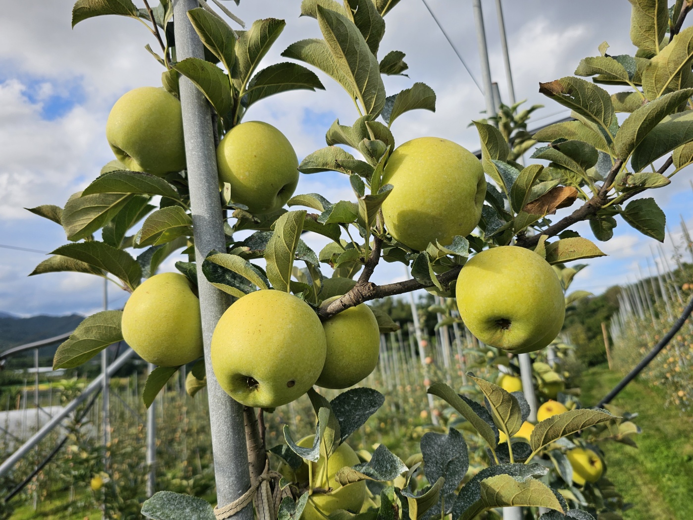 시나노골드 : 황금색 사과로 새콤한맛이 60%, 달콤한맛이 40% 정도로 과육이 단단한 사과