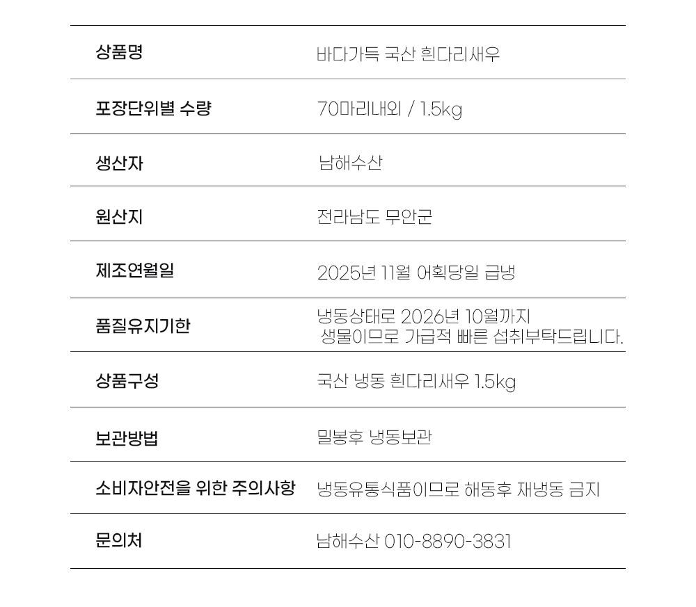 | 품목 또는 명칭 | 국산 냉동 왕새우 |