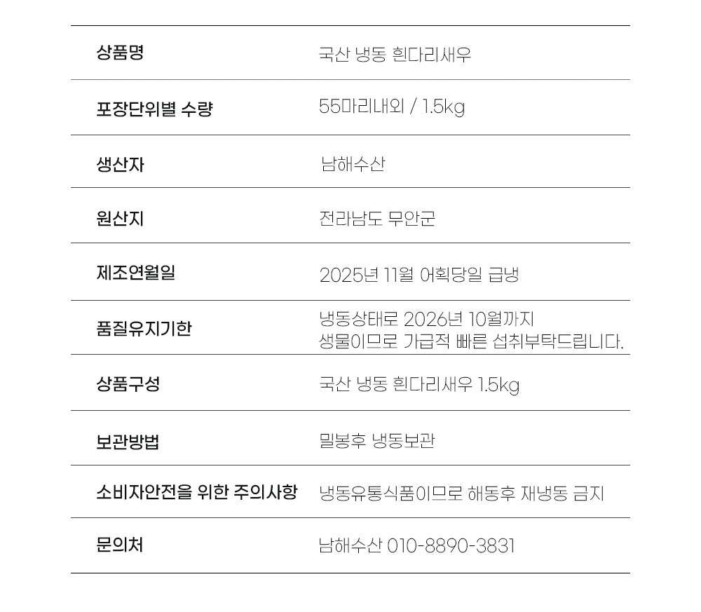남해수산 흰다리왕새우 1.5kg(55마리 내외)