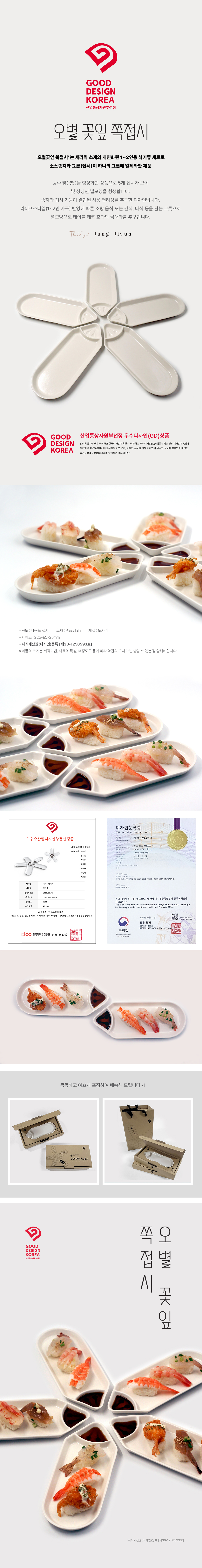오별 꽃잎 쪽접시 3개(225mm*85mm*20mm)