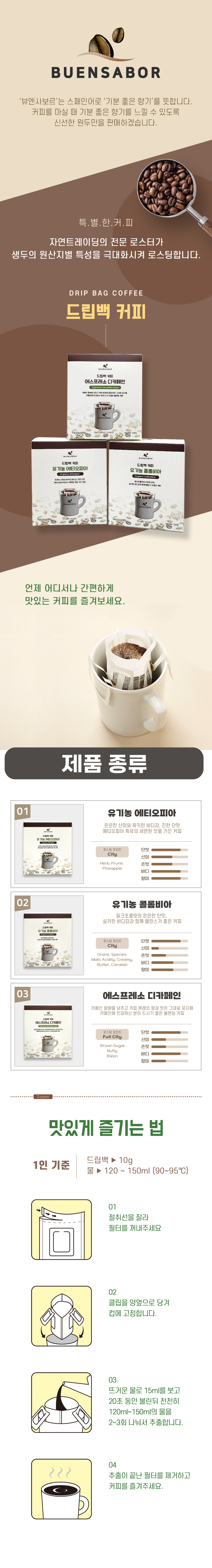 드립백3종선물세트(50g*6개/유기농콜롬비아, 유기농에티오피아, 에스프레소디카페인)