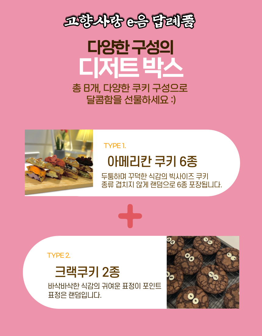 프리미엄 수제디저트 쿠키 8개(아메리칸 쿠키 6종+크랙쿠키 2종)