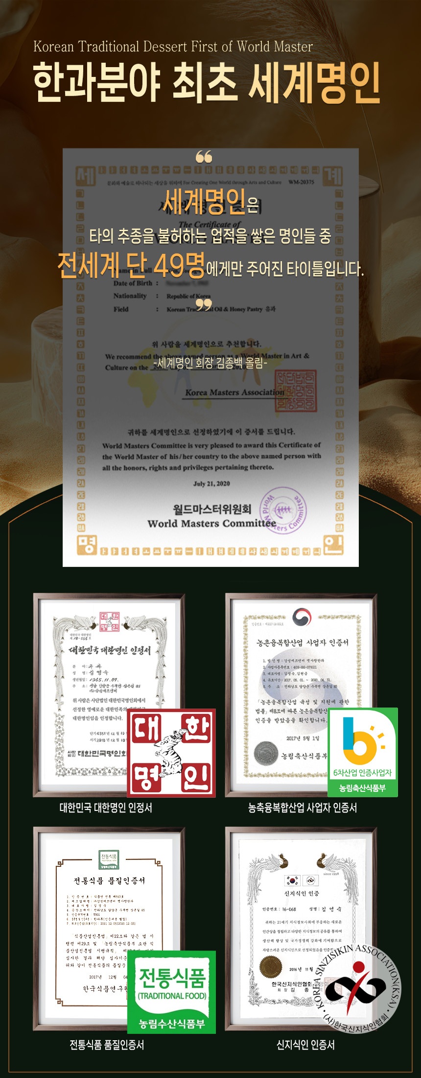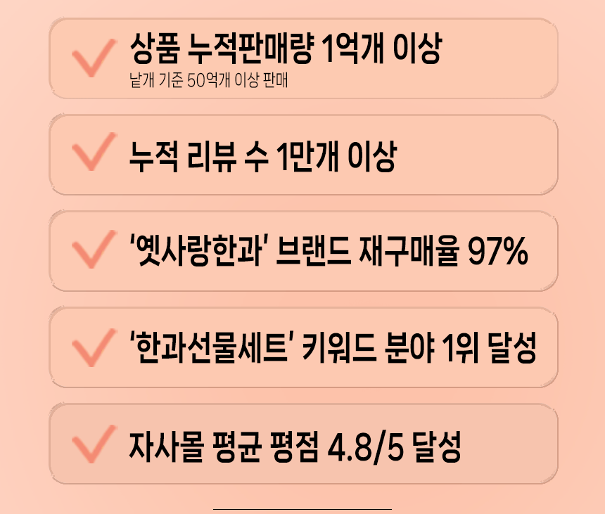 저희 옛사랑한과는 약 100여종의 상장과 상패를 가지고 있는 '검증된 브랜드'입니다!