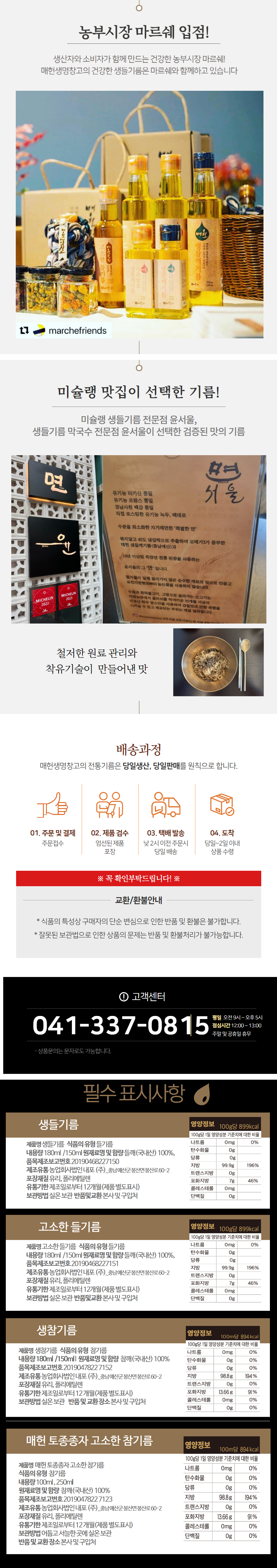 전통기름 4종세트 (생들기름, 고소한들기름, 생참기름, 고소한참기름)