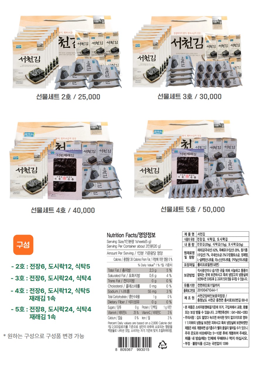 [이벤트] 서천김 선물세트 3호 380g(도시락120g+식탁60g+전장120g+80g)