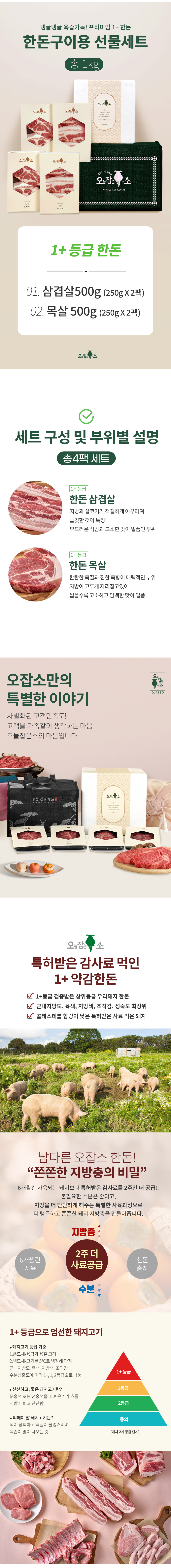 | 상품구성 | 1+등급 한돈 구이세트1kg (삼겹살500g+목살500g) 구이용 |