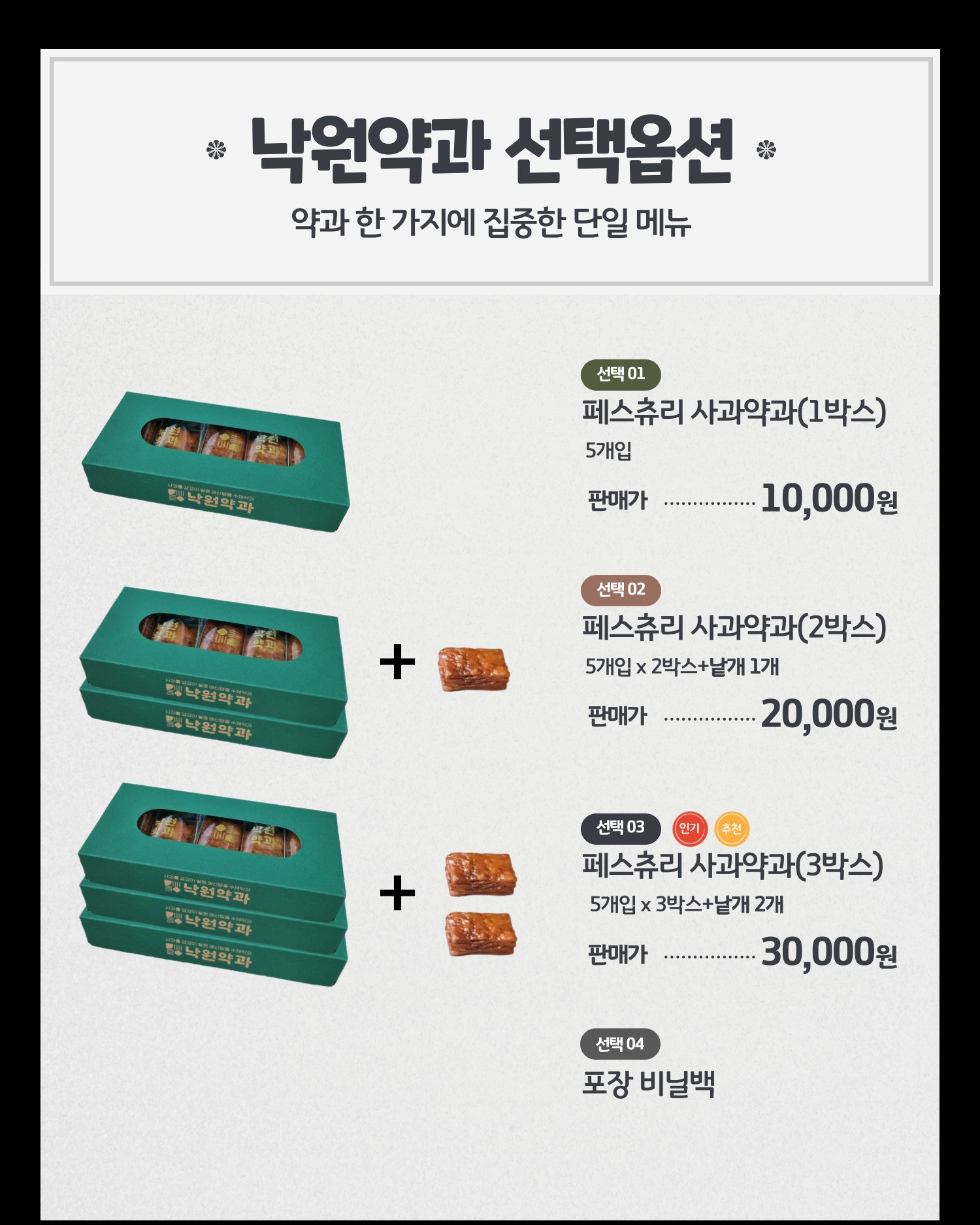 예산시장 낙원약과 전통장인수제 페스츄리 사과약과 680g(5개*3박스*40g+2개*40g)