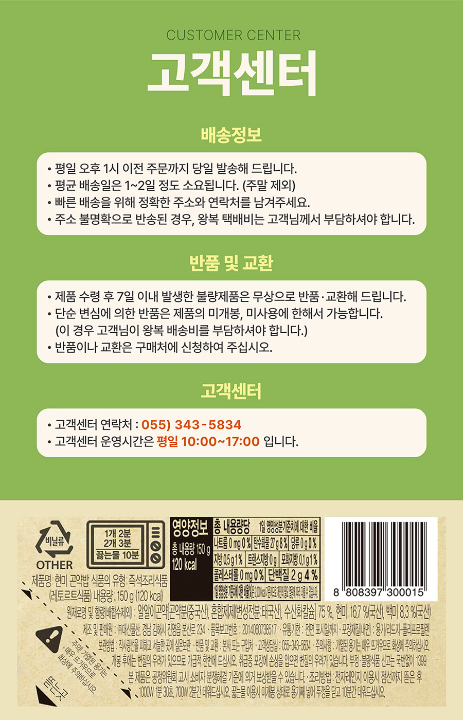 | 원재료명 및 함량 | 상세정보 별도표기 |