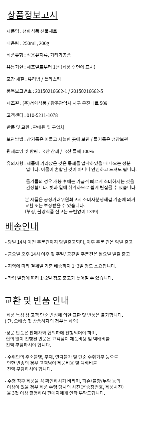 | 유전자변형식품에 해당하는 경우의 표시 | 상세정보 별도표기 |