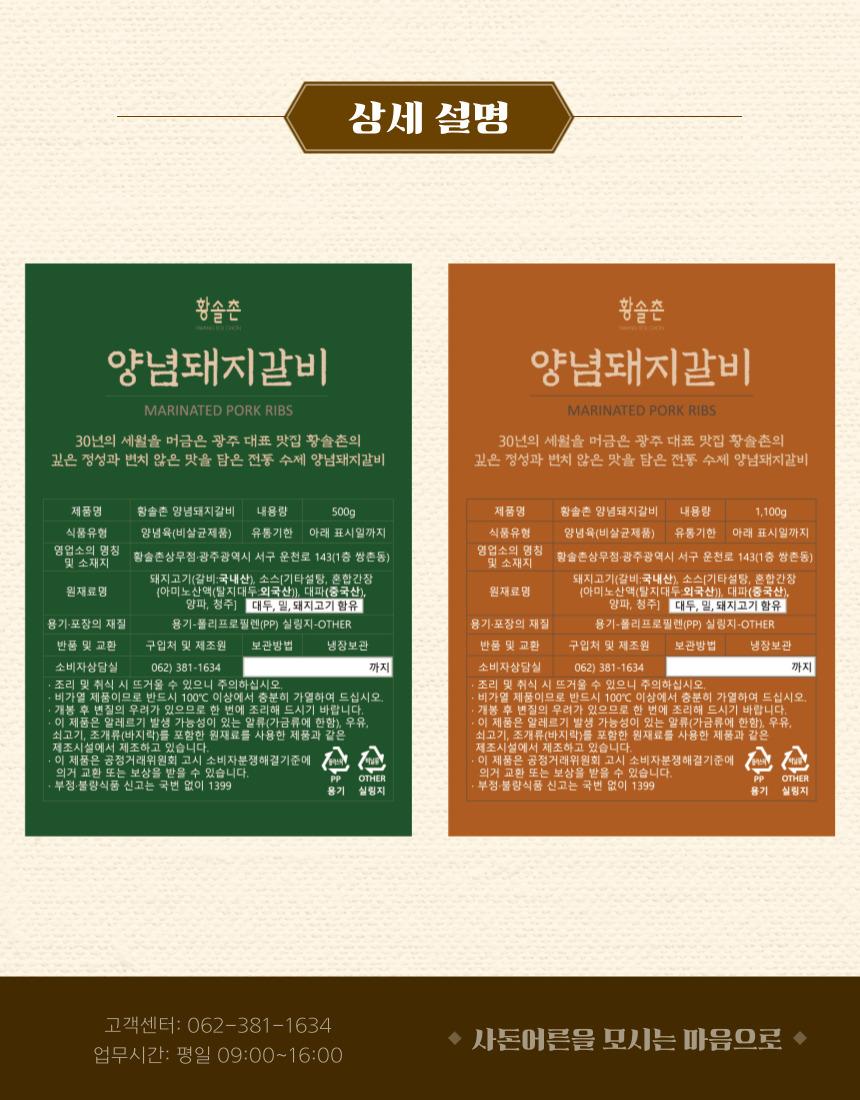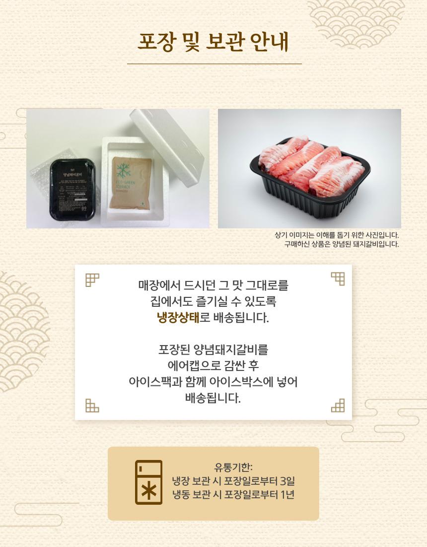 | 소비자 안전을 위한 주의사항 | 양념돼지갈비: 본 상품은 돼지고기, 대두, 밀이 함유되어 있음 / 모든 제품은 알레르기 발생 가능성이 있는 알류(가금류에 한함), 우유, 조개류(바지락)을 포함한 원재료를 사용한 |