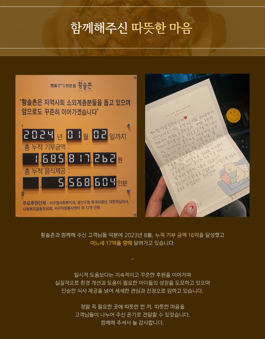 | 답례품 제공자 | (주)황솔촌 상무점 |