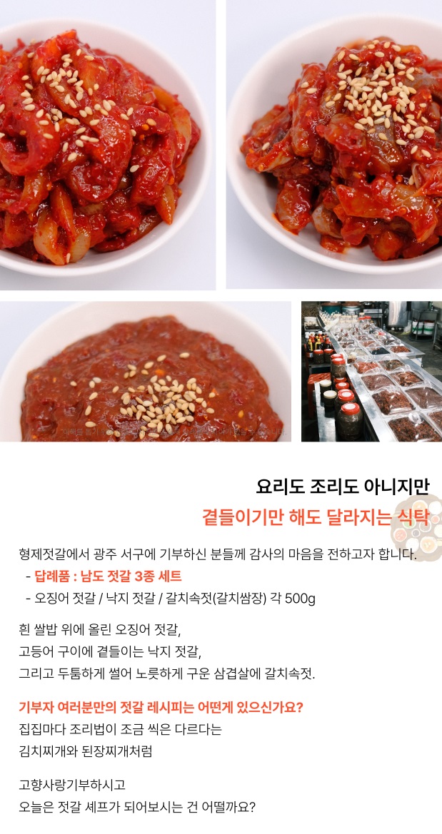밥도둑 남도 젓갈 3종 세트 1.5kg(오징어, 낙지, 갈치속젓 각 500g)
