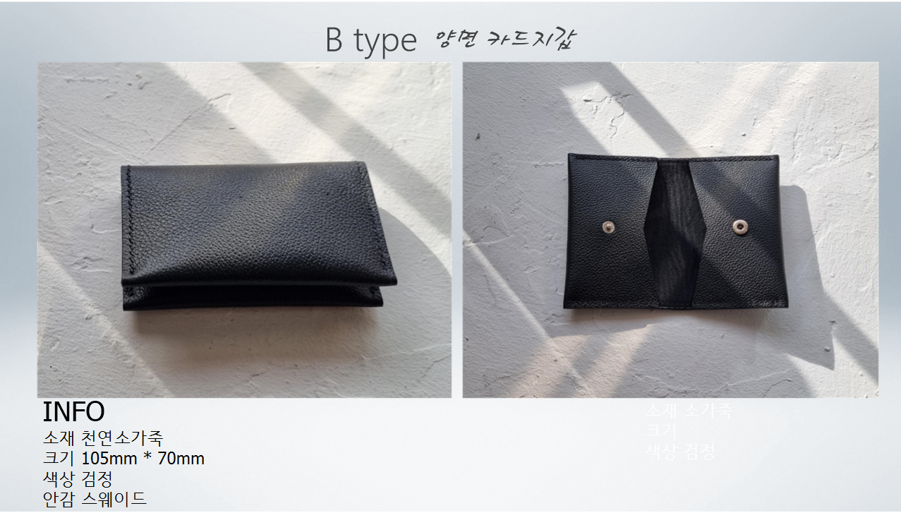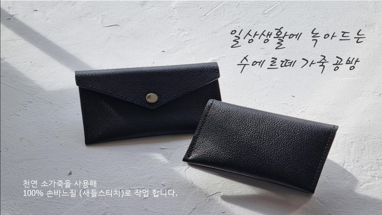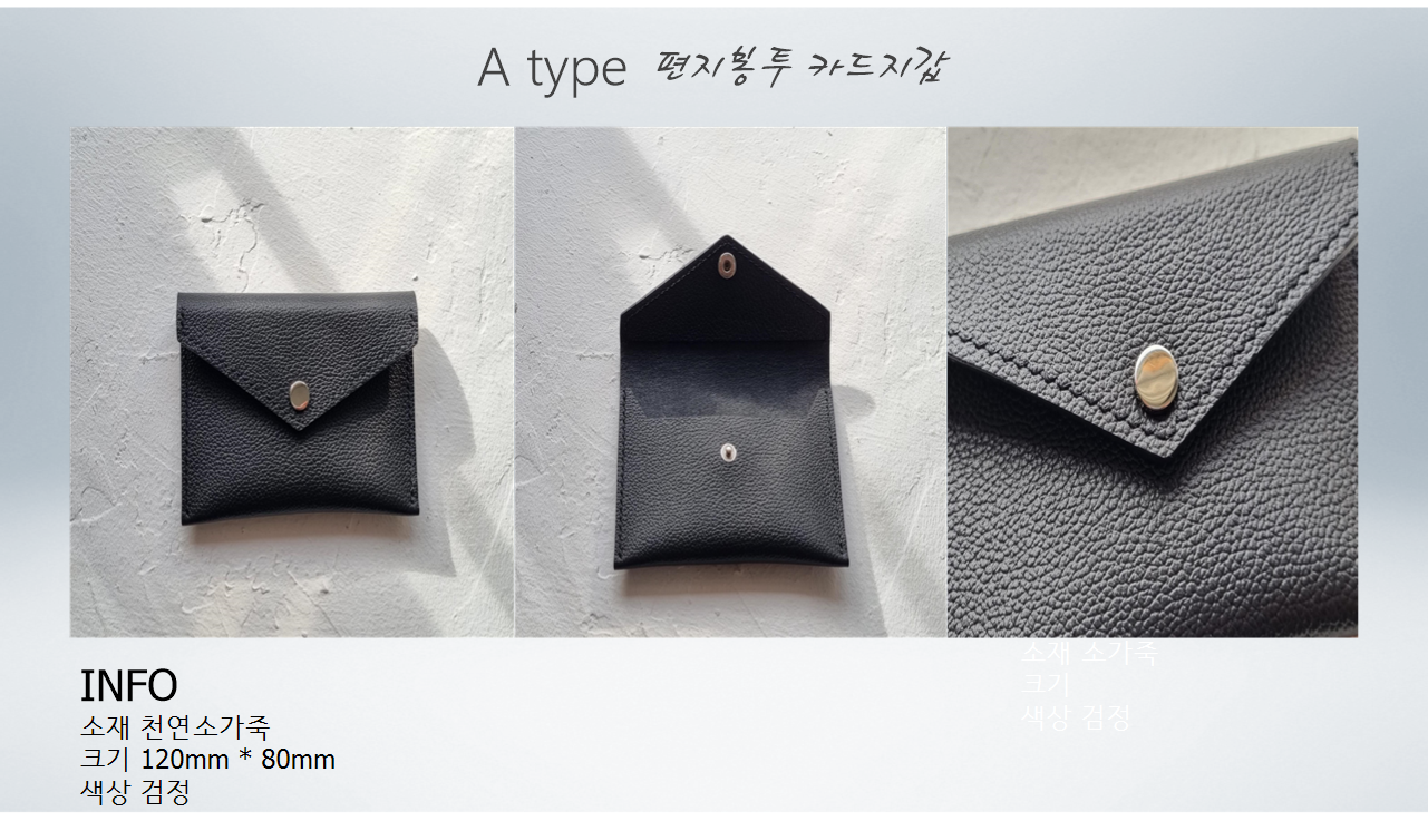 손바느질 가죽 카드지갑 이니셜각인(편지봉투, 양면 카드지갑 중 택1)