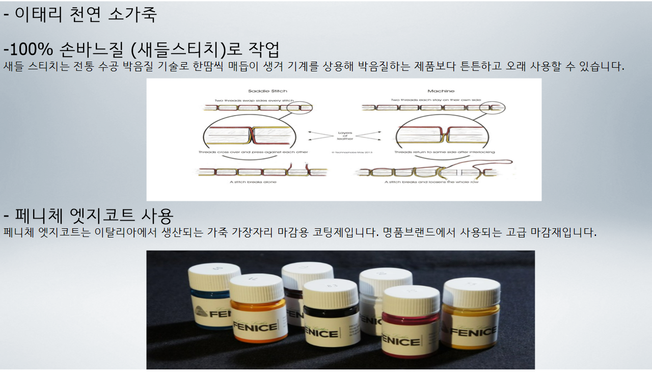 | 제조국 또는 원산지 | 가죽 : 이탈리아 |