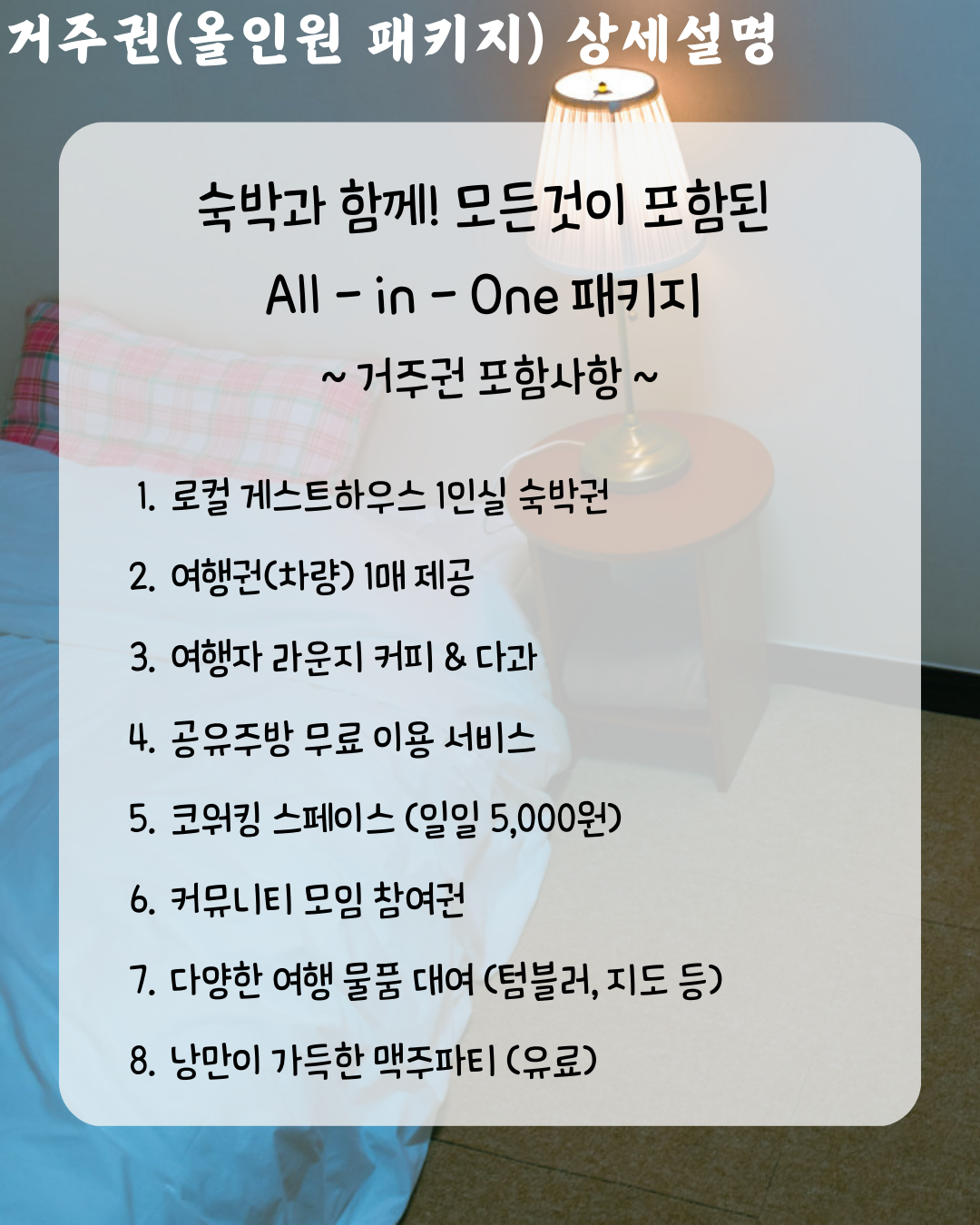 - 괜찮아마을 여행권 및 거주권 환불 규정은 6일 전 취소 또는 결제 후 12시간 이내(100% 환불), 5일 전 취소(90% 환불), 4일 전 취소(80% 환불),