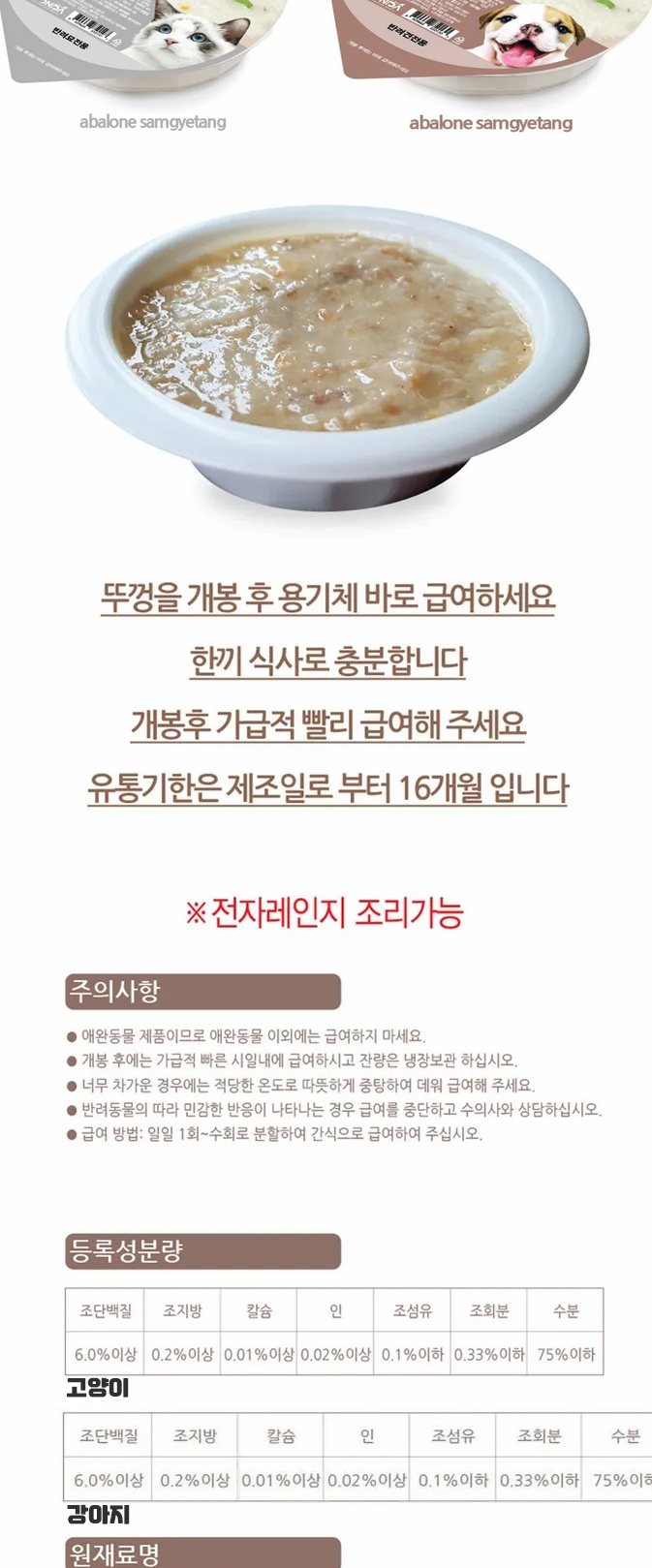 강아지, 고양이 전복영양식 1.44kg(전복삼계탕, 해신탕 중 택 1 0.12kg*12개)