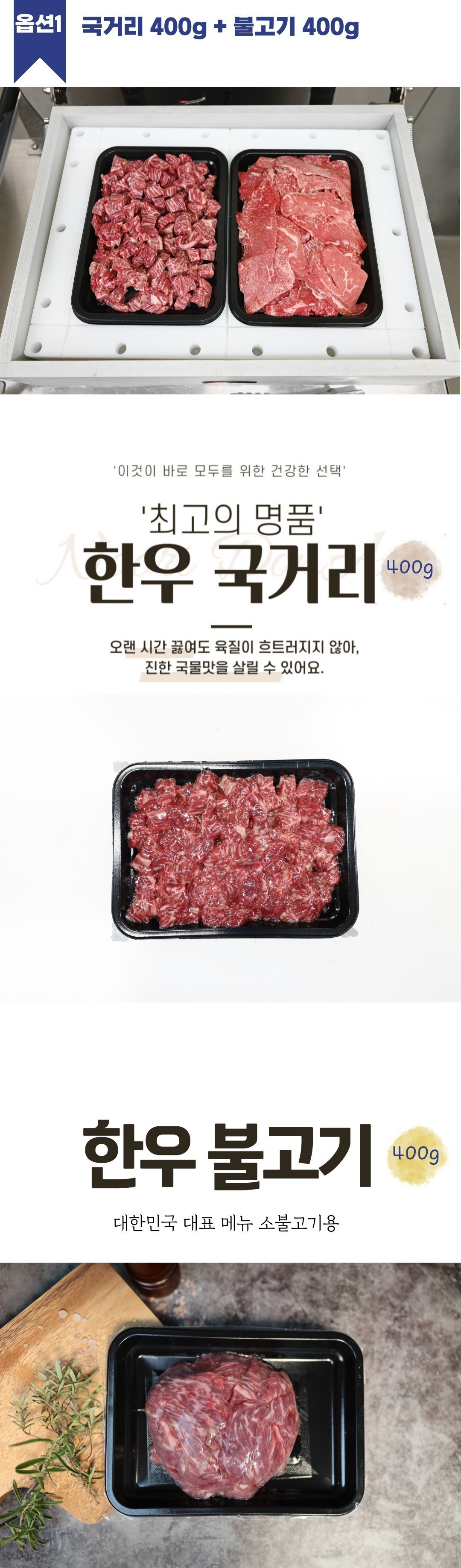 | 포장단위별 내용물의 용량(중량), 수량, 크기 | 국거리 400g, 불고기 400g |