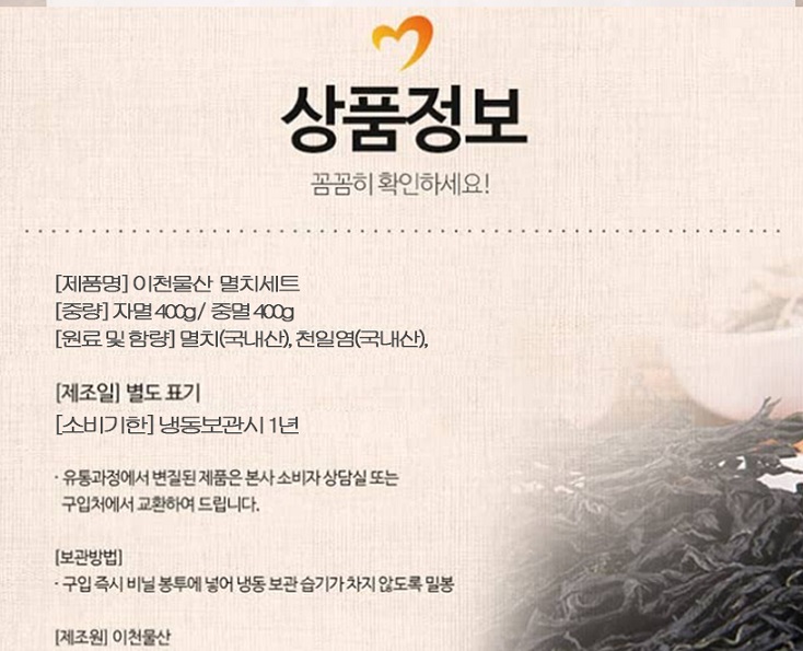 이천물산 멸치세트 800g(자멸 400g+중멸 400g)