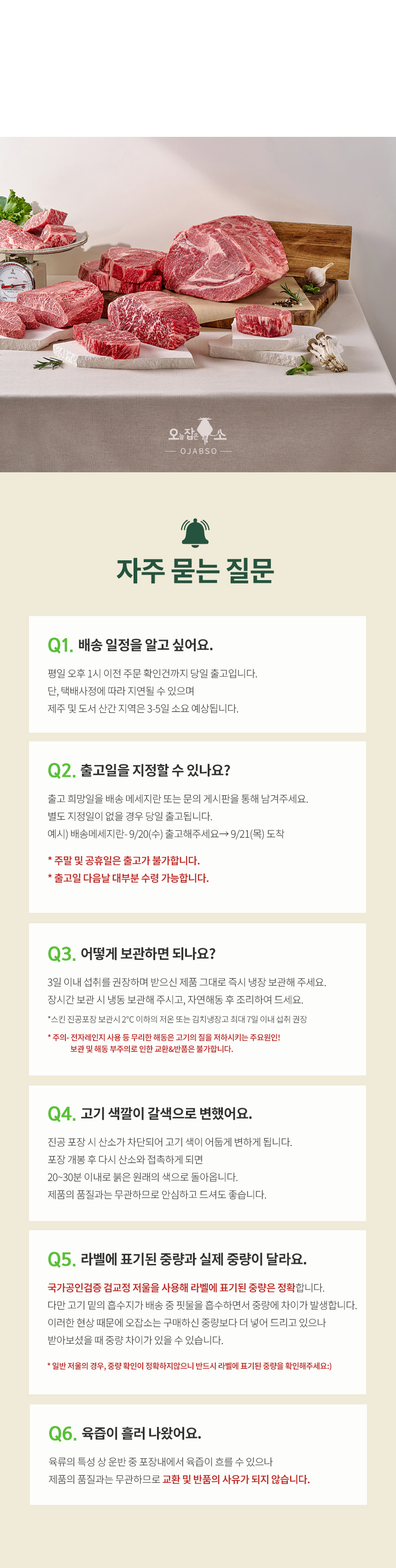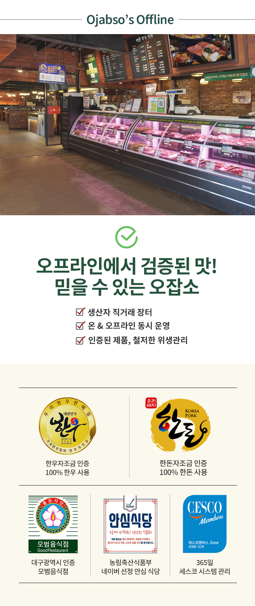 | 소비자 안전을 위한 주의사항 | 1+,1++등급 국내산 한우 |