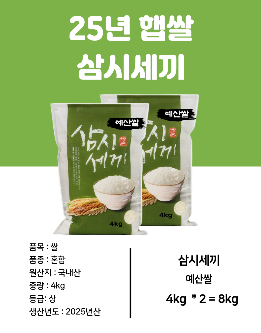 삼세세끼 예산쌀 8kg(4kg+4kg)