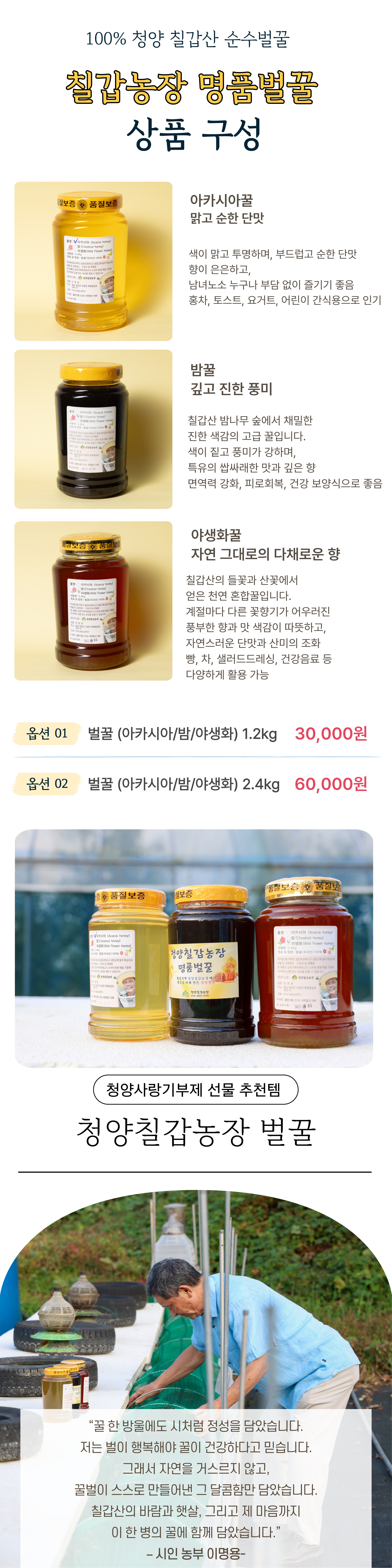 | 품목 또는 명칭 | 청양칠갑농장 명품 야생화꿀 1.2kg |