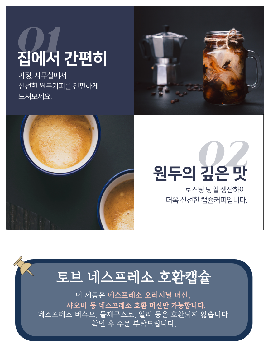 에티오피아 코케허니, 콜롬비아 디카페인 블루웨일 캡슐커피 220g(5g*22개*2세트)