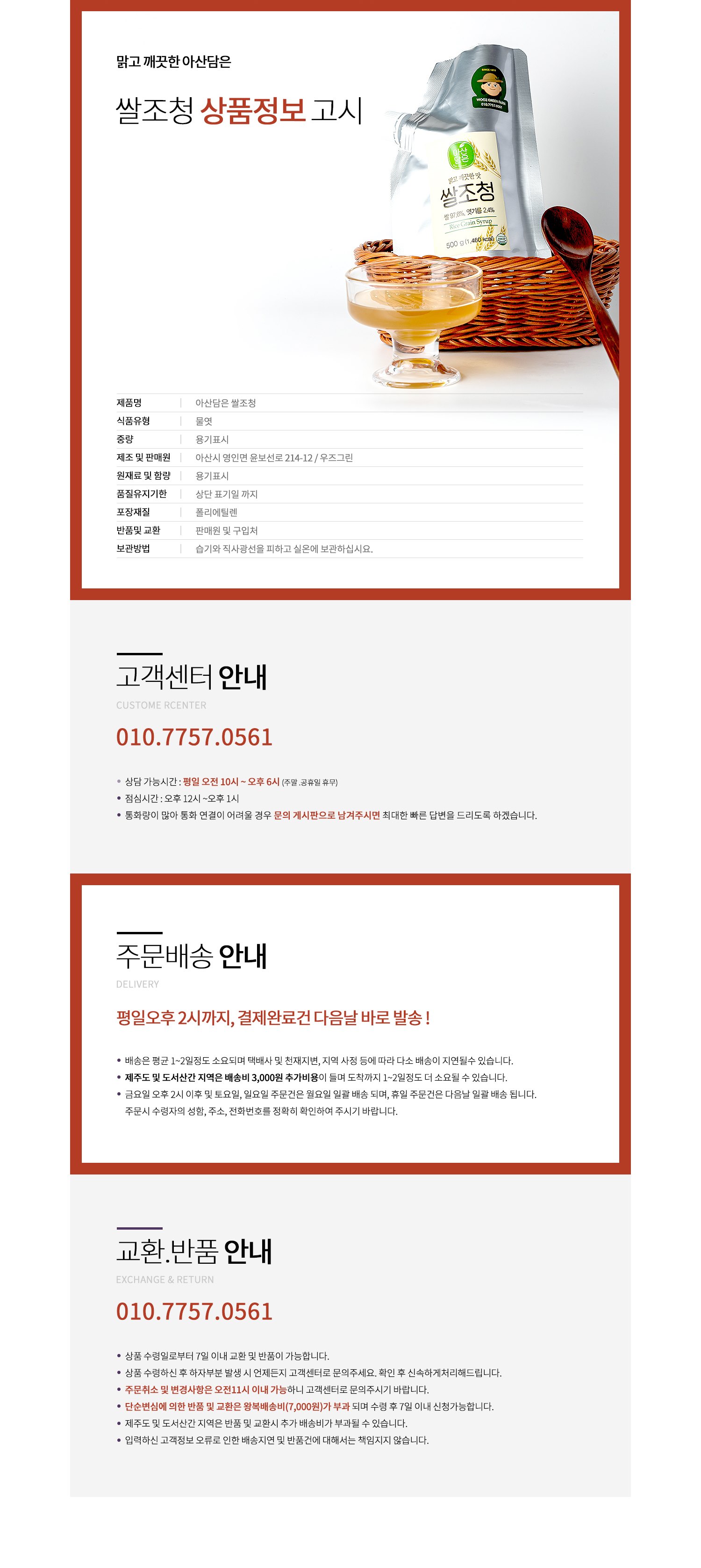 | 원재료명 및 함량 | 쌀 97.6%(국내산), 엿기름 2.4% |