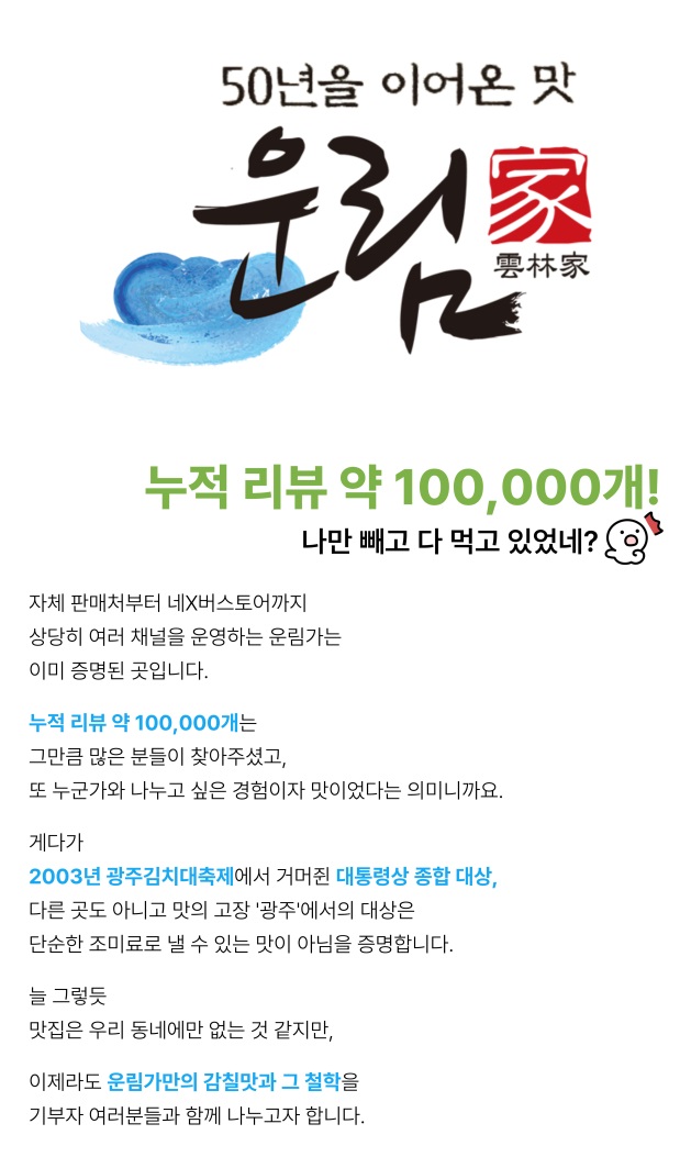 | 생산자 및 소재지 | 농업회사법인(주)운림가 / 광주광역시 서구 매월동699-1 (주)운림가 |