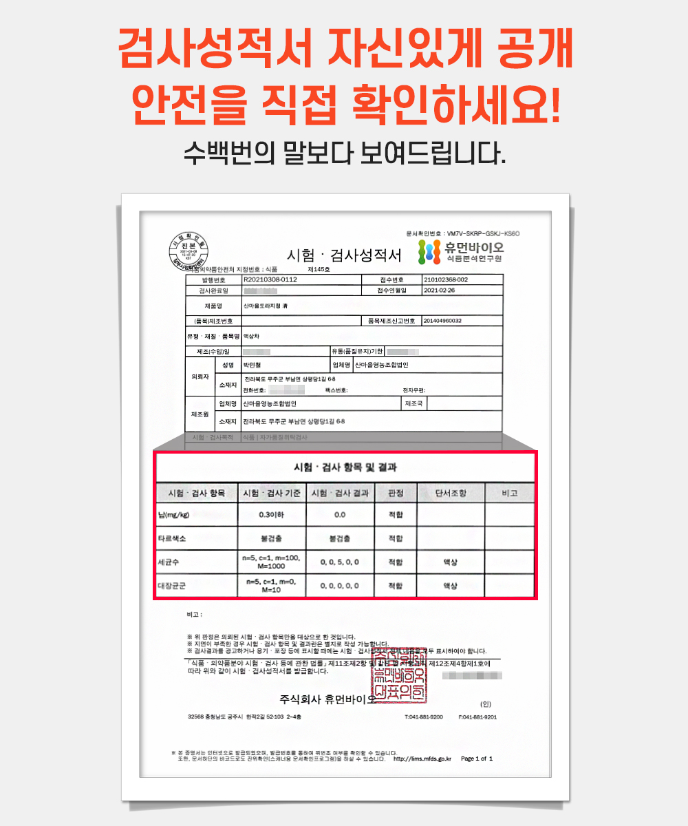 | 생산자 및 소재지 | 산마을영농조합법인 |