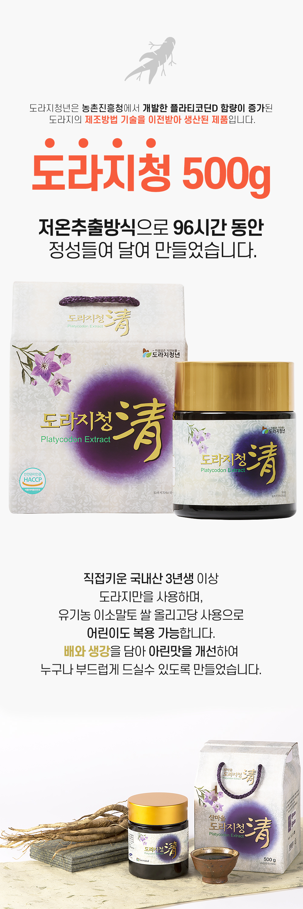 100% 국내산 도라지와 유기농 쌀 올리고당 도라지청 500g