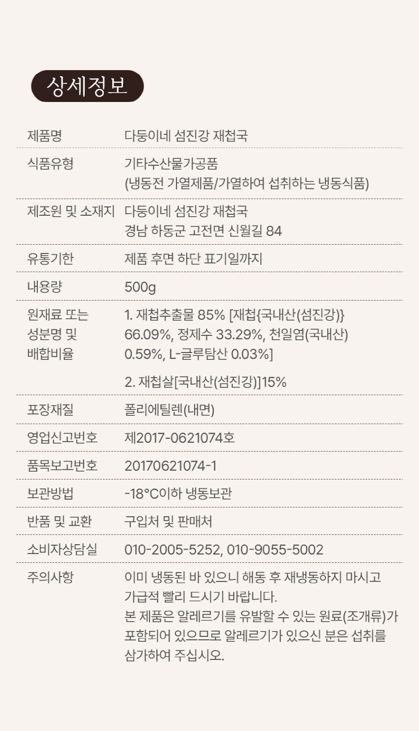 | 답례품 제공자 | 다둥이네섬진강재첩국 |
