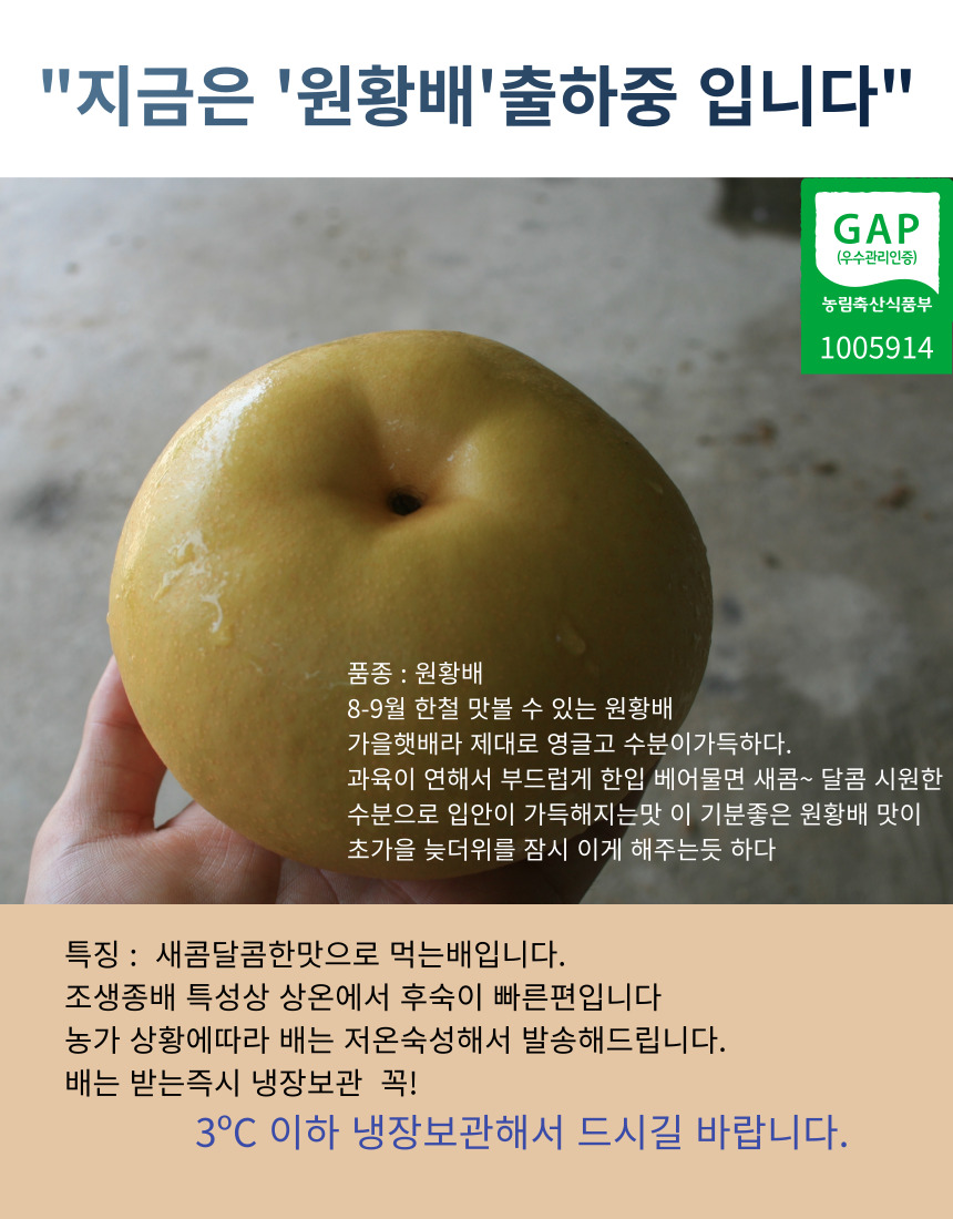 9월 3일부터 순차적으로 원황배, 화산배, 신화배,신고배, 추황배 출하하고있습니다