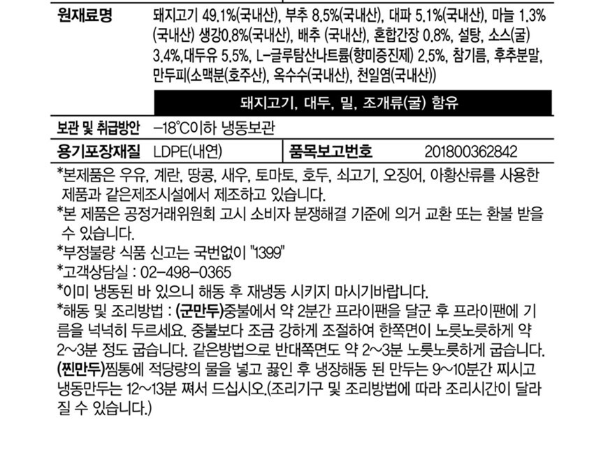| 원재료명 및 함량 | 상세정보 별도표기 |