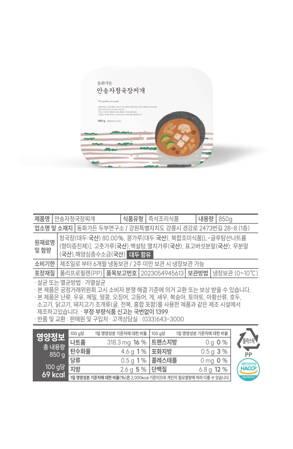 구성품 : 순물순두부(1000g)+안송자청국장찌개(850g)+국산콩비지찌개(850g)