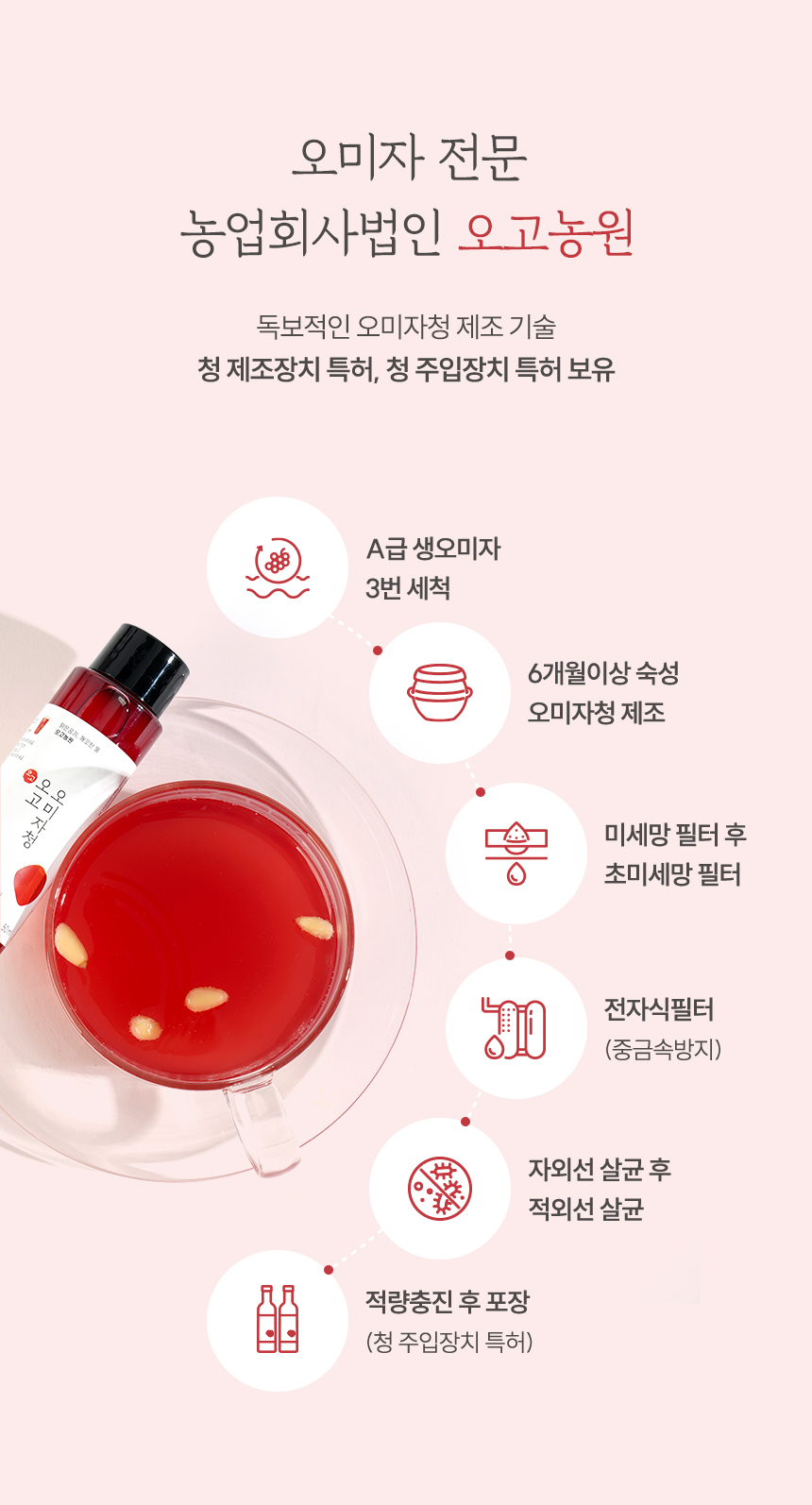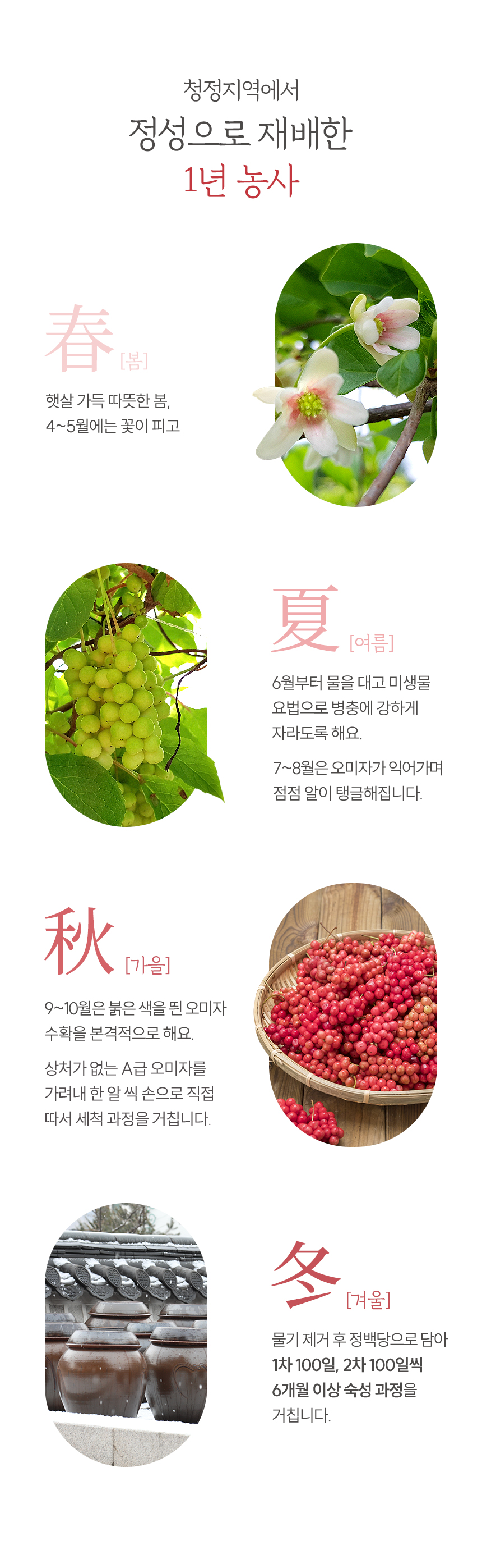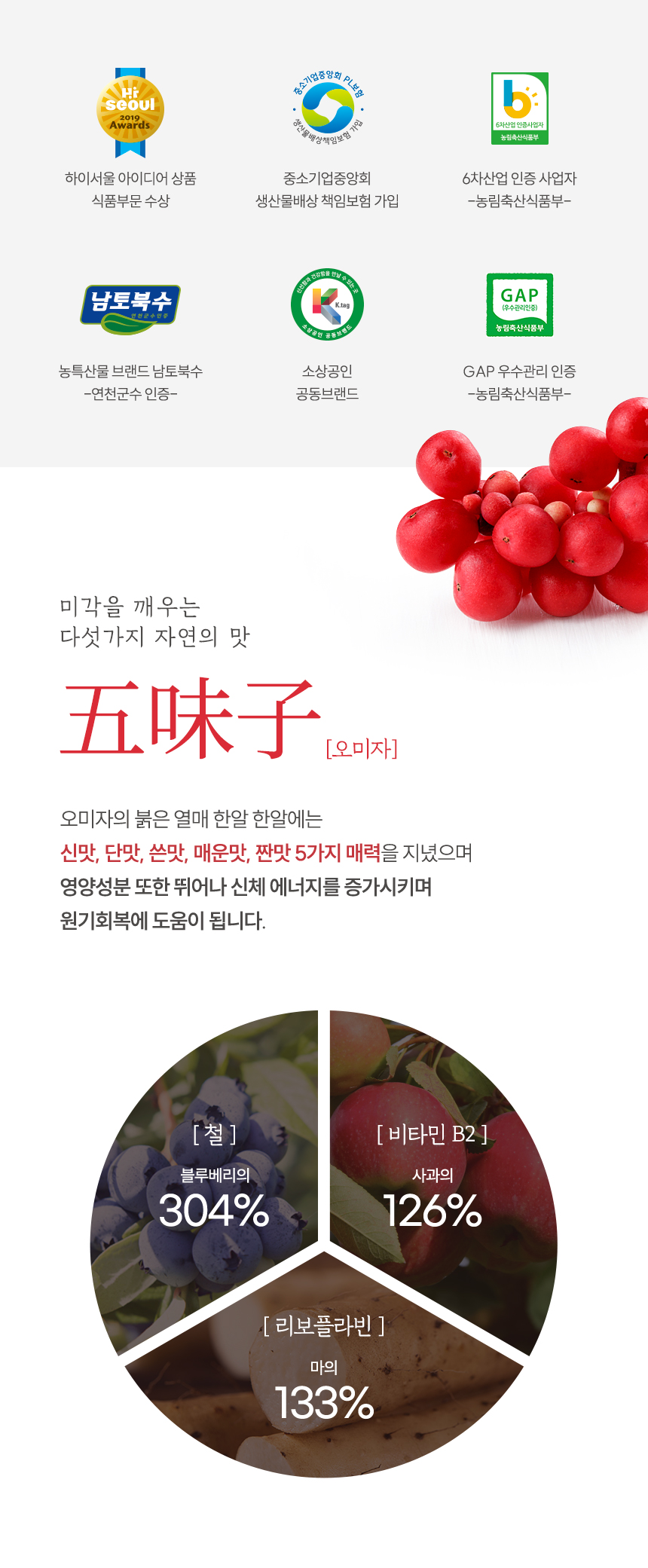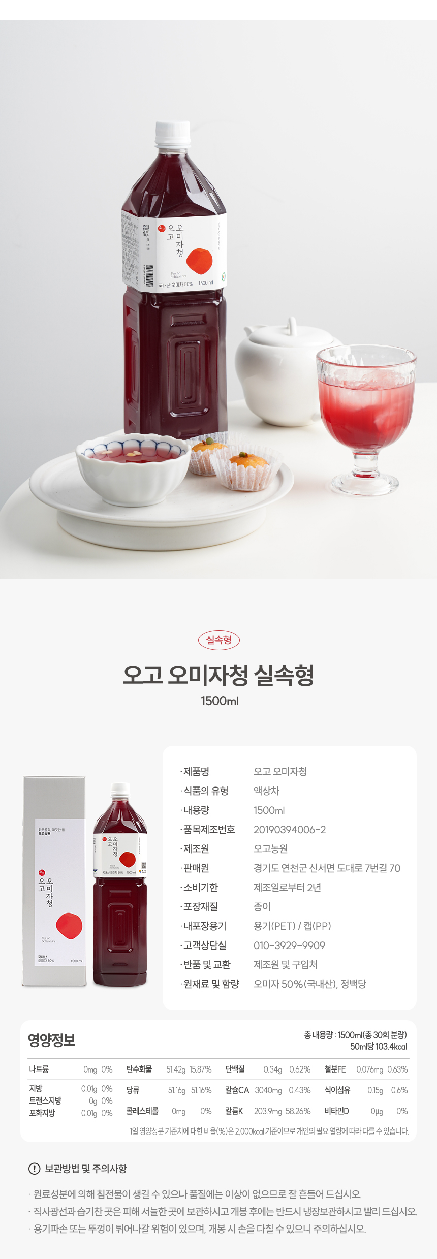 | 원재료명 및 함량 | 국내산 오미자 50%,정백당 |