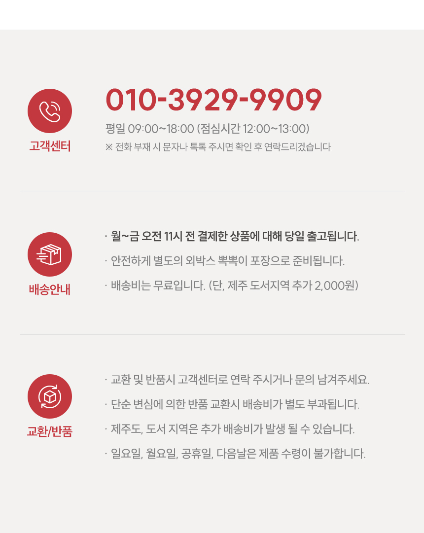 | 소비자상담 관련 전화번호 | 010-3929-9909 |