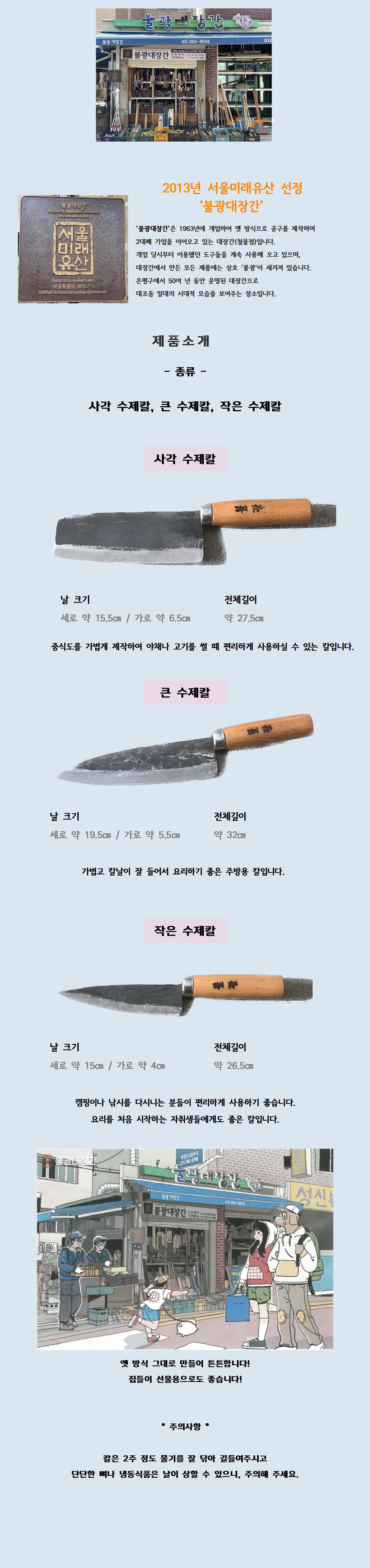 서울미래유산 불광대장간 작은 수제칼(15cm*4cm)