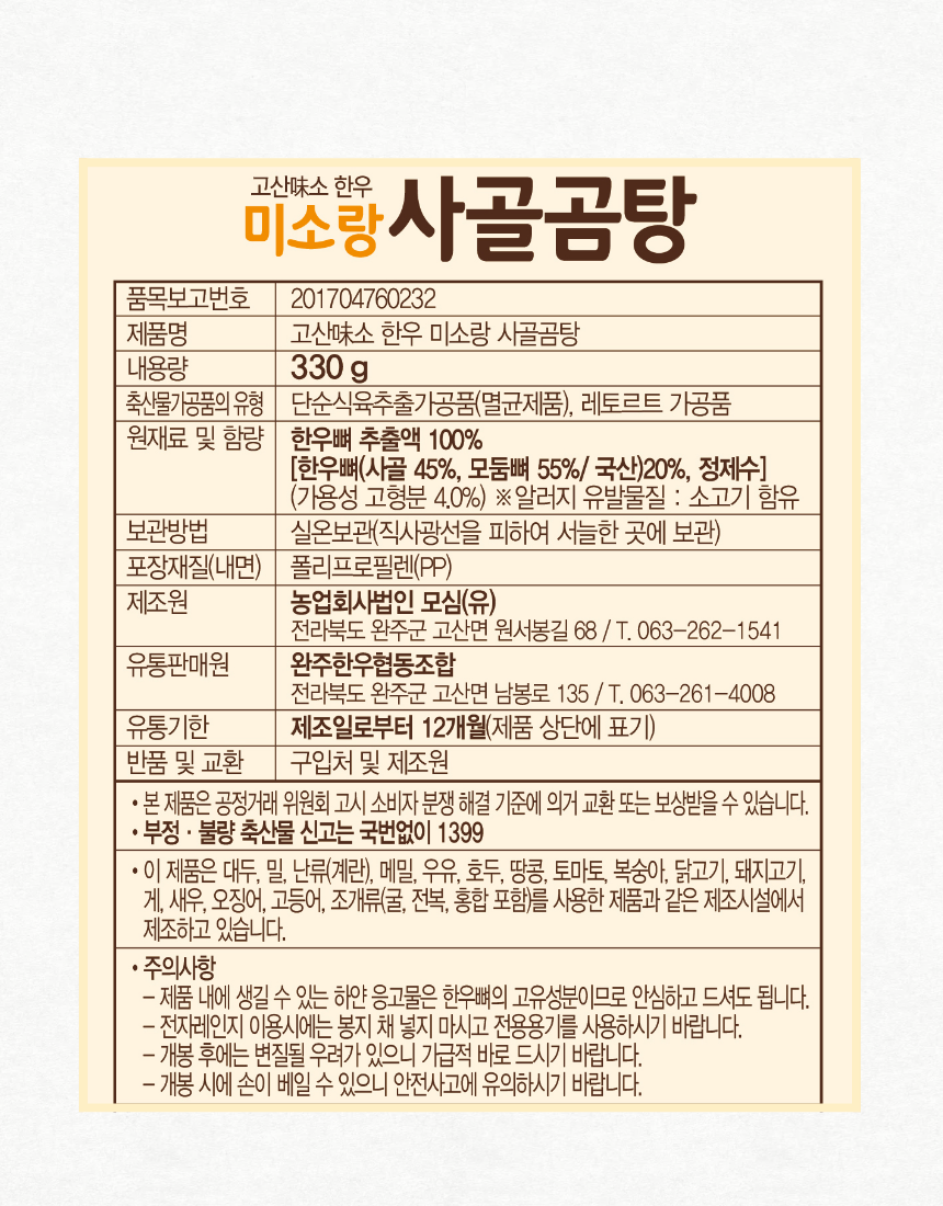 고산미소 한우 미소랑 사골곰탕(330g*10팩)