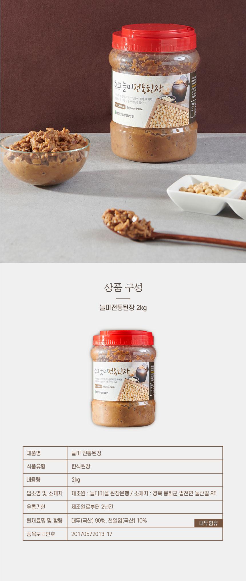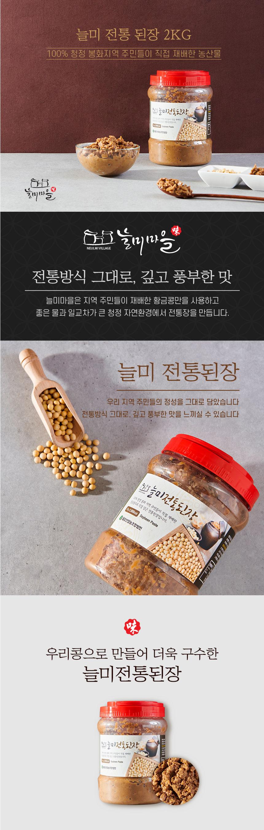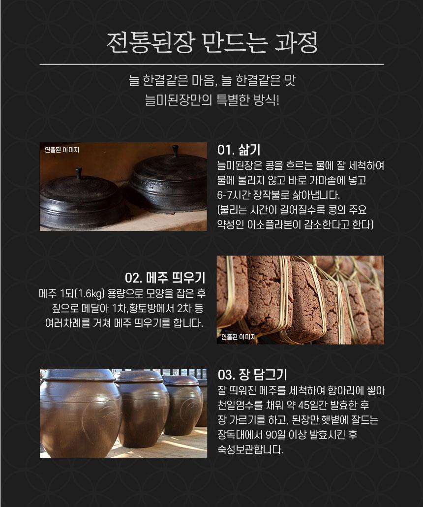 감칠맛을 내는 여러 아미노산과 올리고당이 어울려 독특한 맛과 향이 뛰어난 “늘미된장” 입니다
