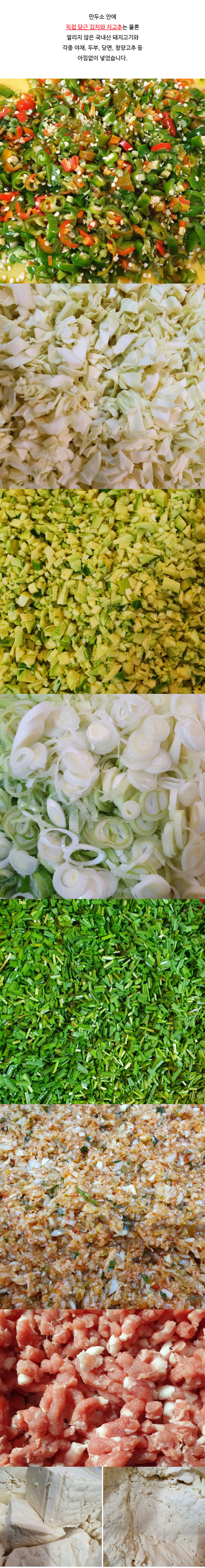 | 원재료명 및 함량 | 돼지고기, 지고추, 김치 : 국내산 참기름, 고추가루 : 국내산&외국산 마늘, 파, 배추, 부추, 밀가류, 두부, 당면 : 외국산 |