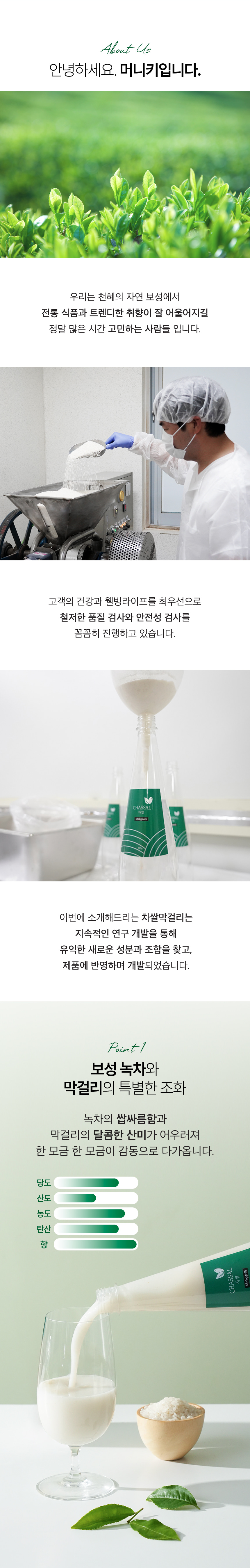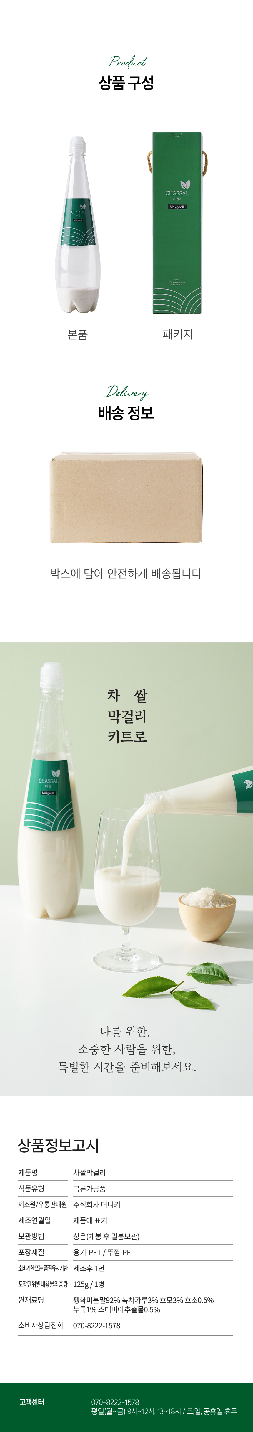 | 포장단위별 내용물의 용량(중량), 수량 | 녹차 쌀 막걸리 키트 250g(125g*2개) |