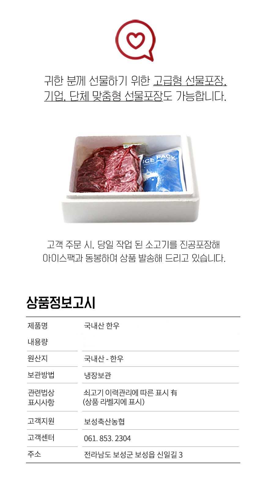 | 답례품 제공자 | 보성축협축산물명품관 |