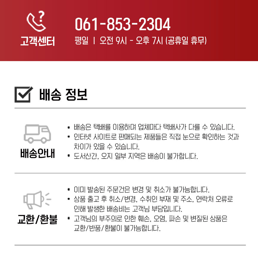 | 소비자상담 관련 전화번호 | 061-853-2304 |