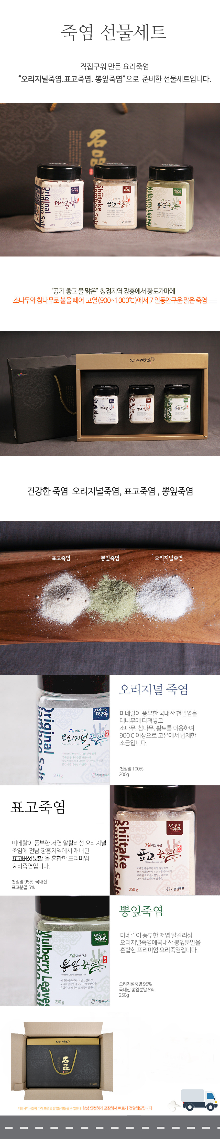 7일동안 구운 죽염 TOP 3 750g(오리지널, 표고, 뽕잎 각 250g)